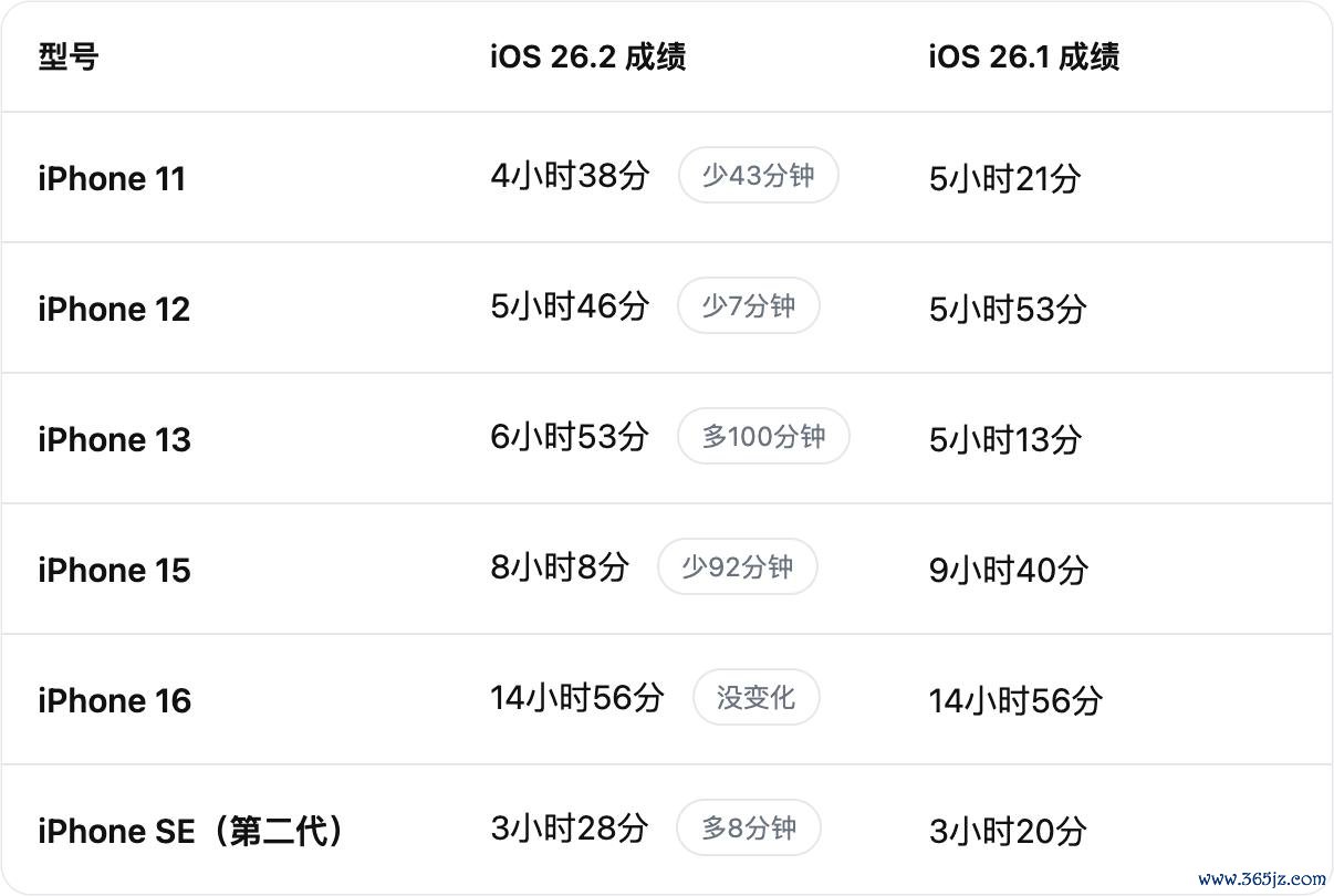 近日外洋博主 iAppleBytes 就按照成例对 iOS 26.2 进行了续航测试。
